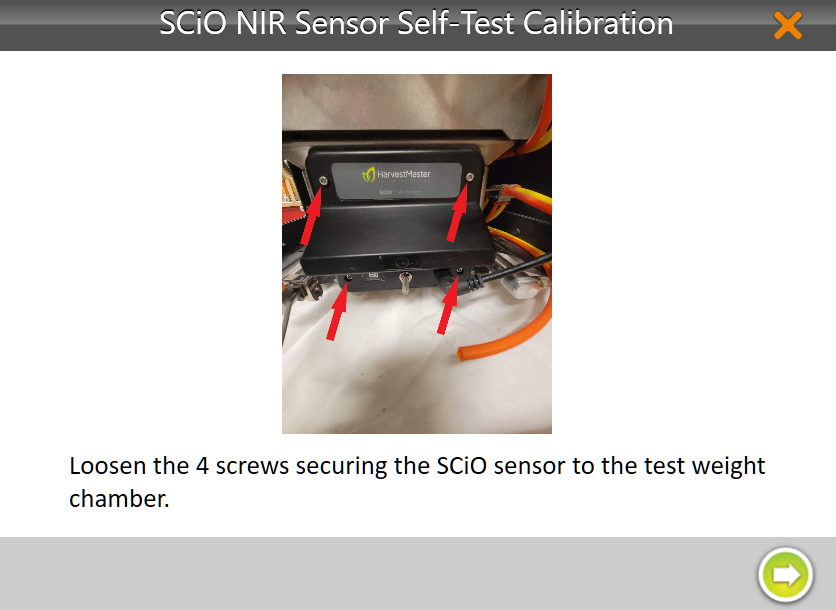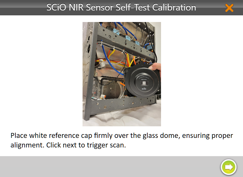 - From Setup > H3 GrainGage > Calibration, tap SCiO NIR Sensor Self-Test Calibration