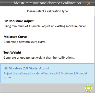 - Select H2 Moisture 2.0 Model Adjust and tap the next arrow