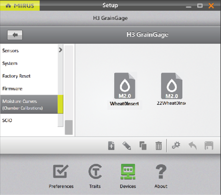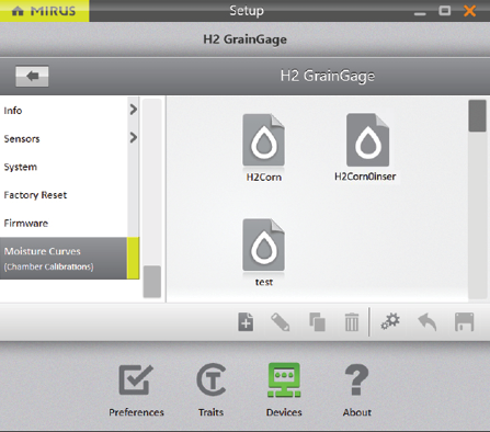 - Go to Setup > H3 GrainGage > Moisture Curves.