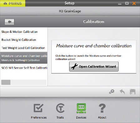 - Go to Home > Setup > H2 or H3 GrainGage > Calibration.