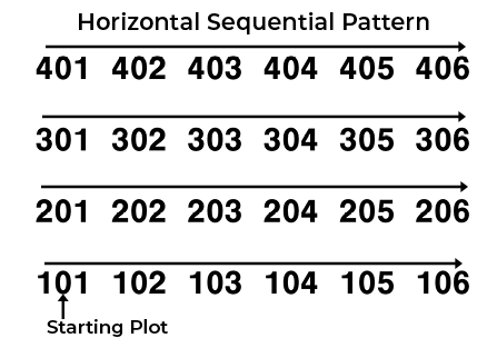 Plot numbering begins in the bottom left corner of a field.