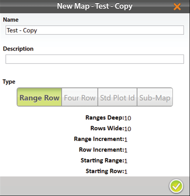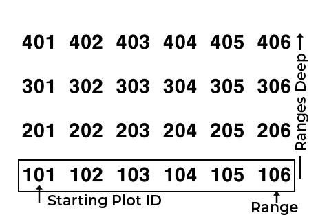 A Standard Plot ID map gives a unique ID number to each individual plot. The number of Ranges and Rows can reach up to 999. However, the display number can reach up to five digits, depending on how you choose to number the plots.