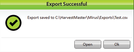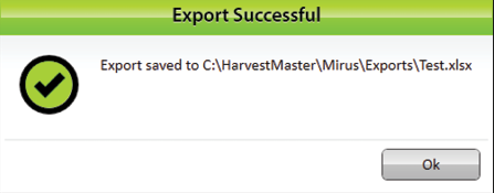 Mirus notifies of the successful export. - Tap OK to finish the export.