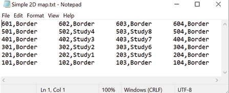 Two-dimensional maps need to be in TXT format in order to be imported. The following is an importable 2D map file: