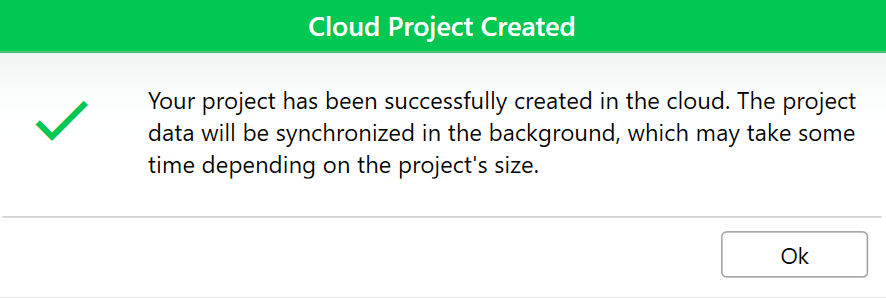 - Tap OK. Uinta confirms that the cloud project is created.