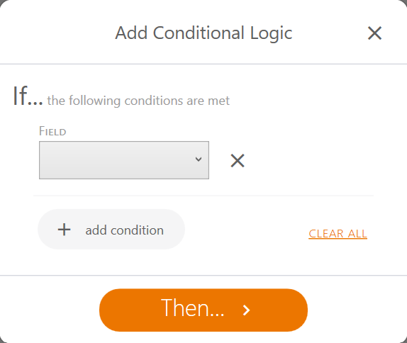 - In Field, select the field on which to base the conditional logic (the "if" clause).