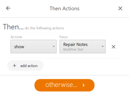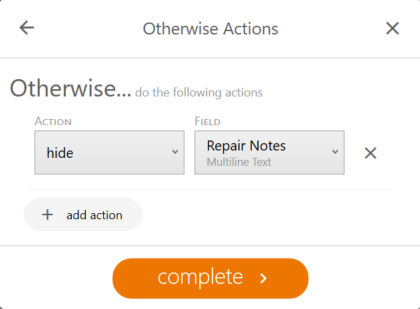 In the following example, Uinta hides the field Repair notes when the field Needs repair? is set to No.