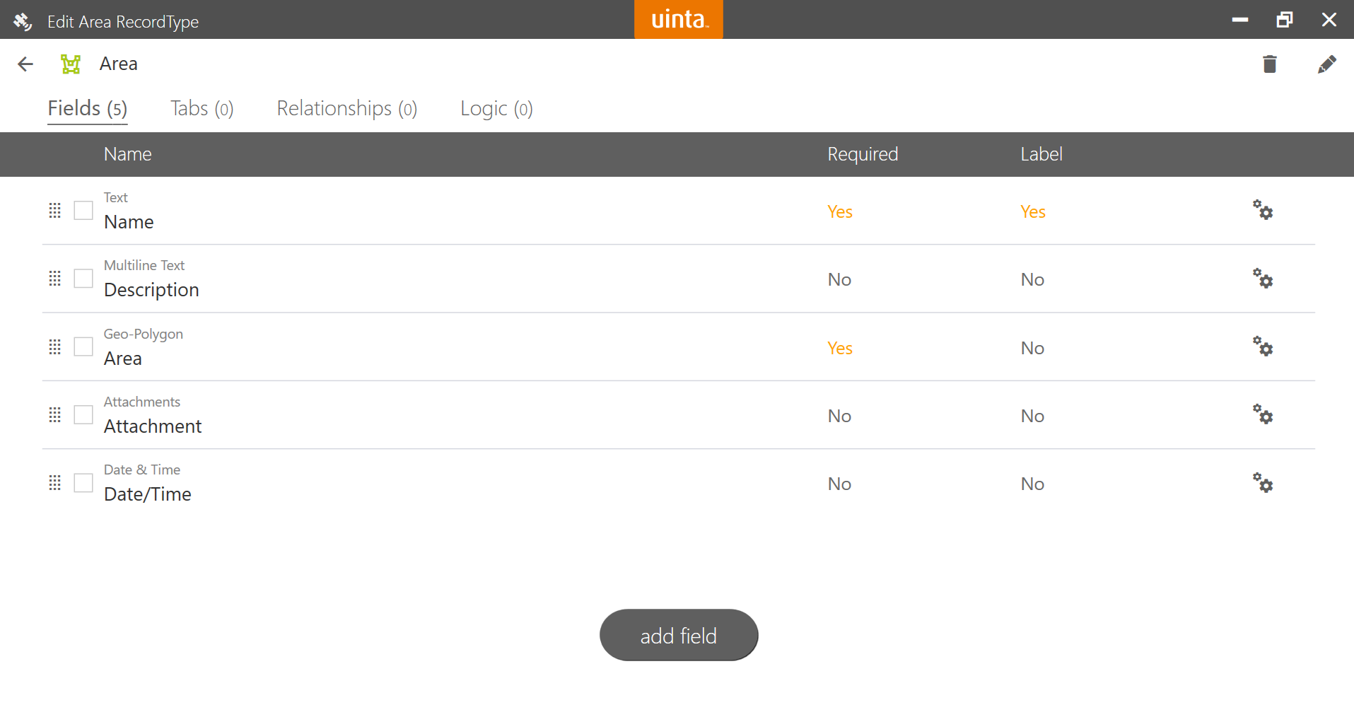- To add fields to the tab, select the tab and tap Add field. (See Add a field to a Record Type.)