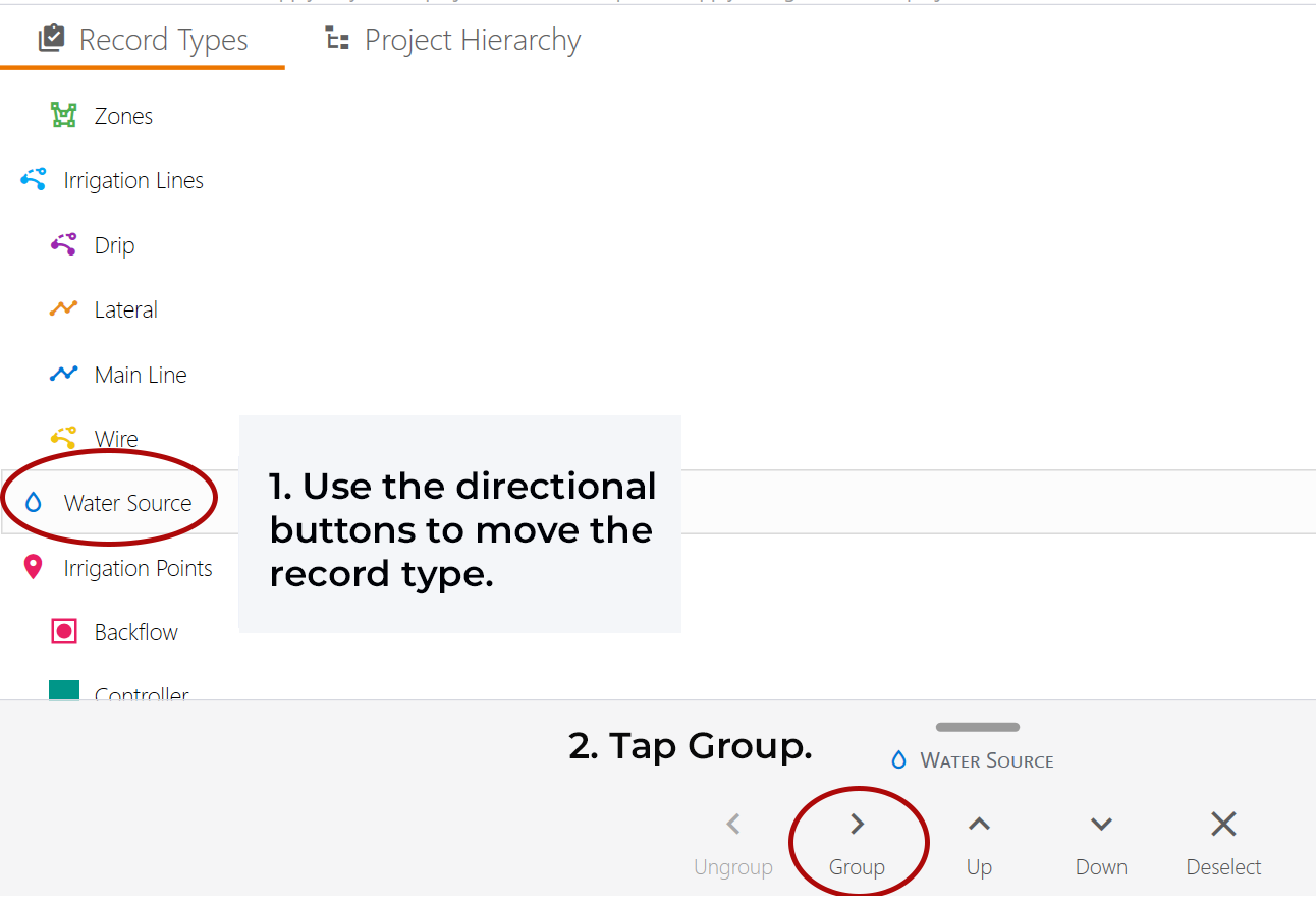 - Use the pop-up menu at the bottom of the screen to group/ungroup and move the selected record type.