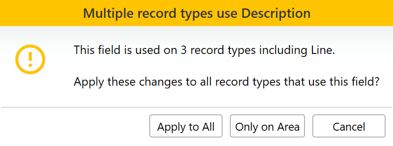 - If the field is used by other record types, determine how you want to apply the changes. Tap Apply to All, Only on (record type), or Cancel.