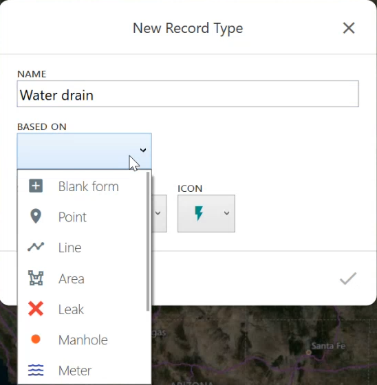 Use a non-spatial record type, such as or Record, to create a custom data collection form that does not require a geo-line, geo-point, or geo-area. This record type is only visible from the List View.