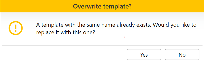 - Tap Yes to overwrite the template. Tap No to go back and change the template name.