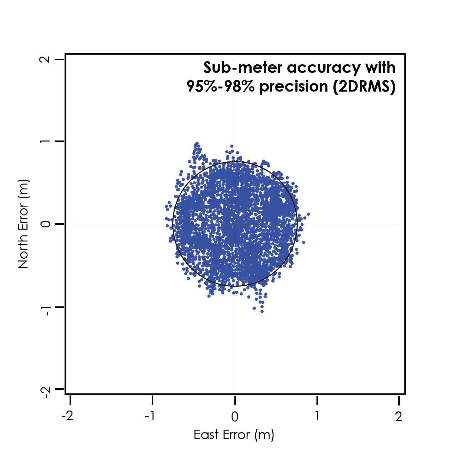 Note: GNSS accuracy is subject to observation conditions, multipath environment, number of satellites in view, satellite geometry, and ionospheric activity.