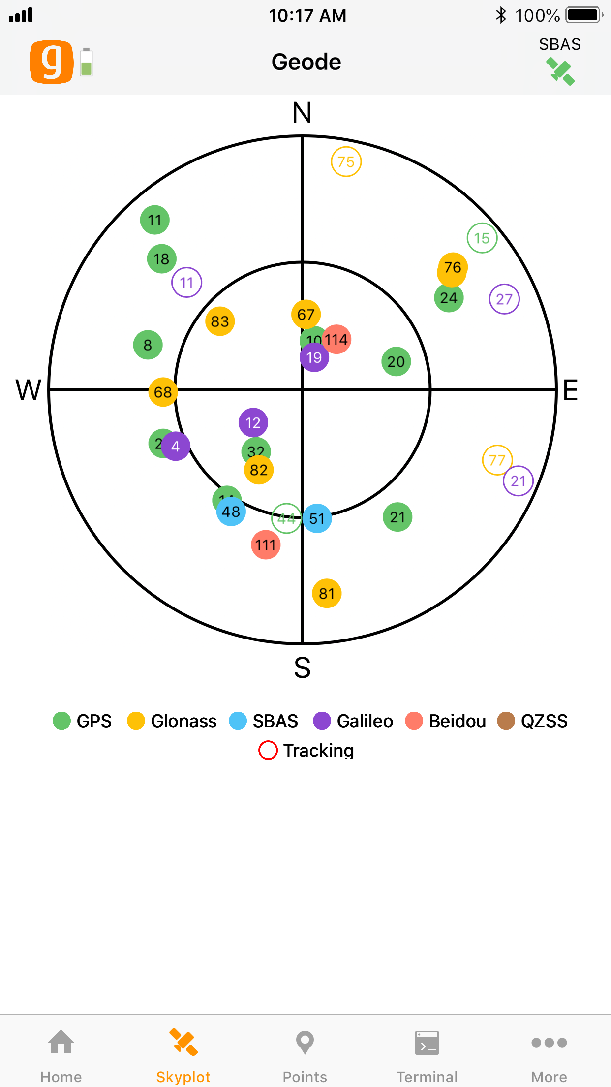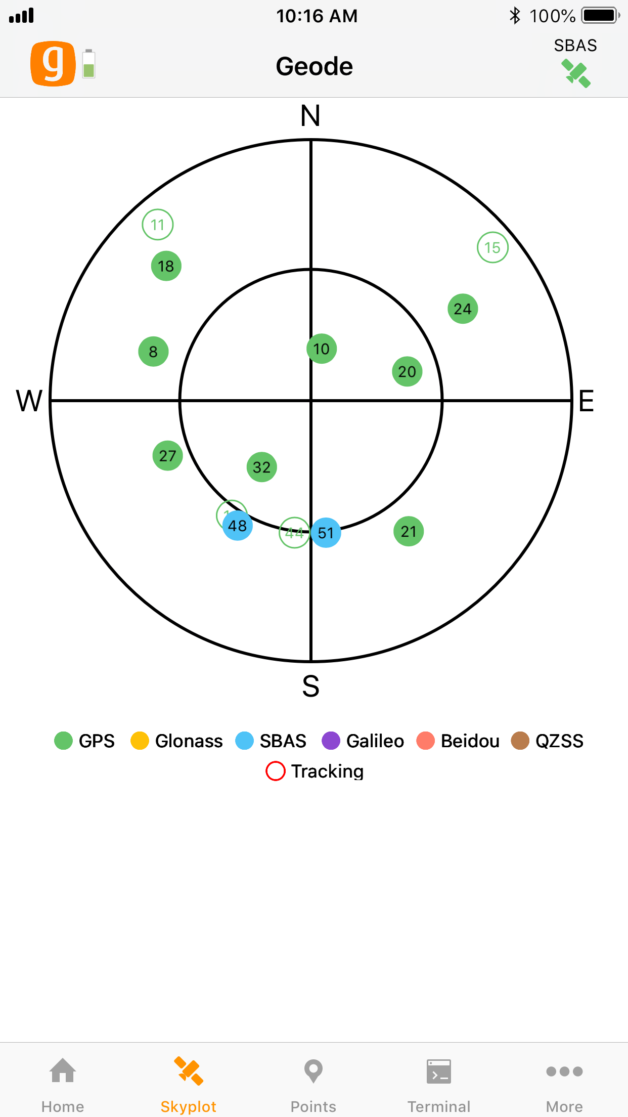 The Geode receives Satellite Based Augmentation System (SBAS) data. SBAS includes regional networks of ground and satellite technologies that work together to boost the accuracy and dependability of GNSS/GPS data. SBAS uses stationary land-based GNSS/GPS monitors to calculate GNSS position errors caused by ionospheric disturbances. This error causes delays in timing, which result in position errors.