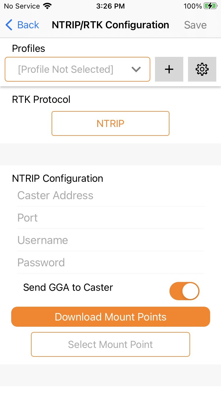 If the third-party app has built-in NTRIP/RTK capabilities, do not use Geode Connect. Simply connect to the Geode and configure NTRIP/RTK in the third-party app.