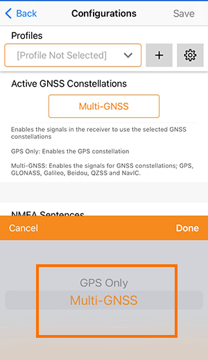 - Tap the constellation you want to use (Multi-GNSS or GPS Only)