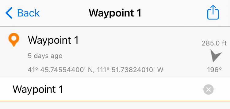 and confirm deletion. - To export the selected waypoints, tap the share icon