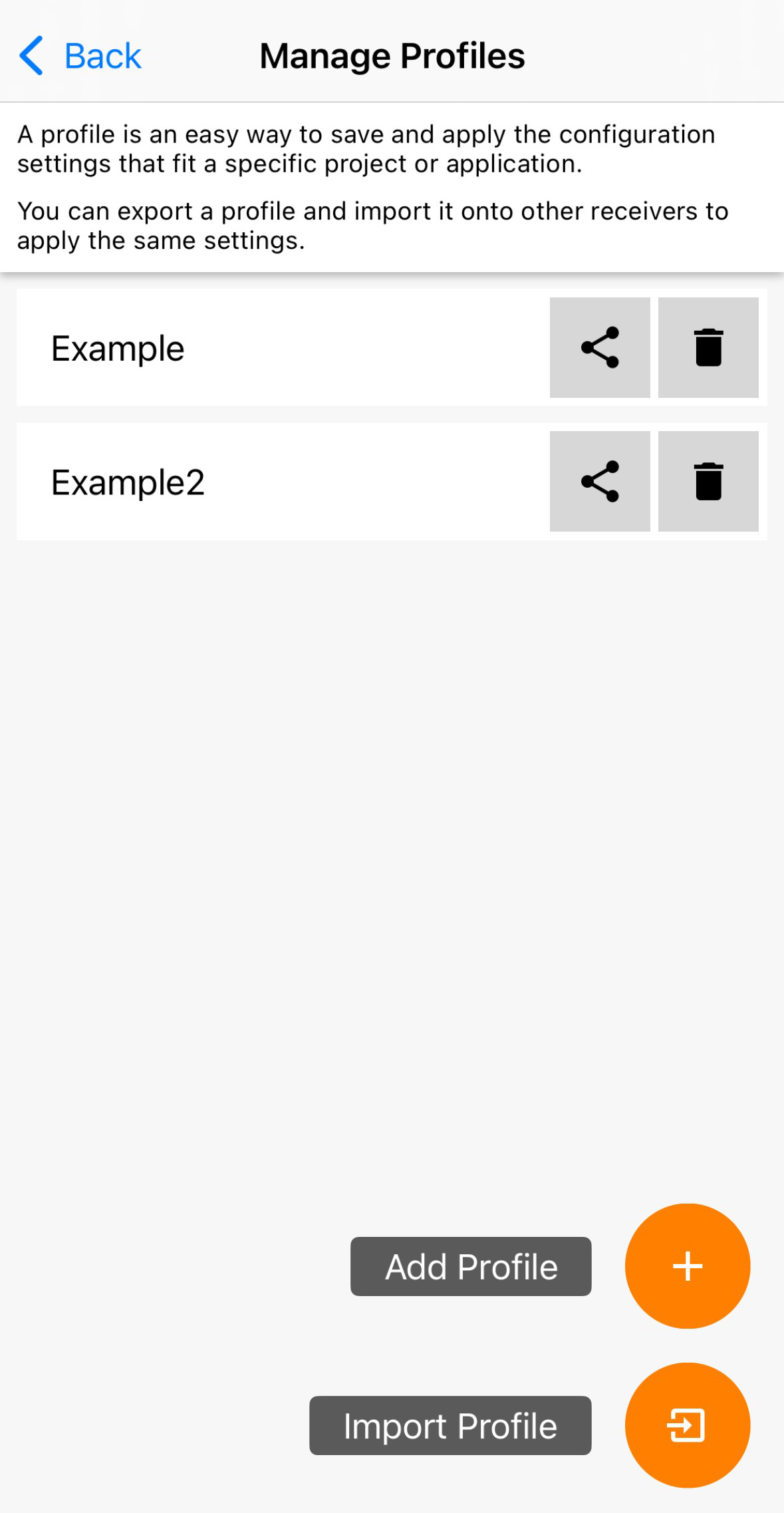 For instructions on adding or editing a profile, see Profiles in 5.5.3 Receiver Configuration.