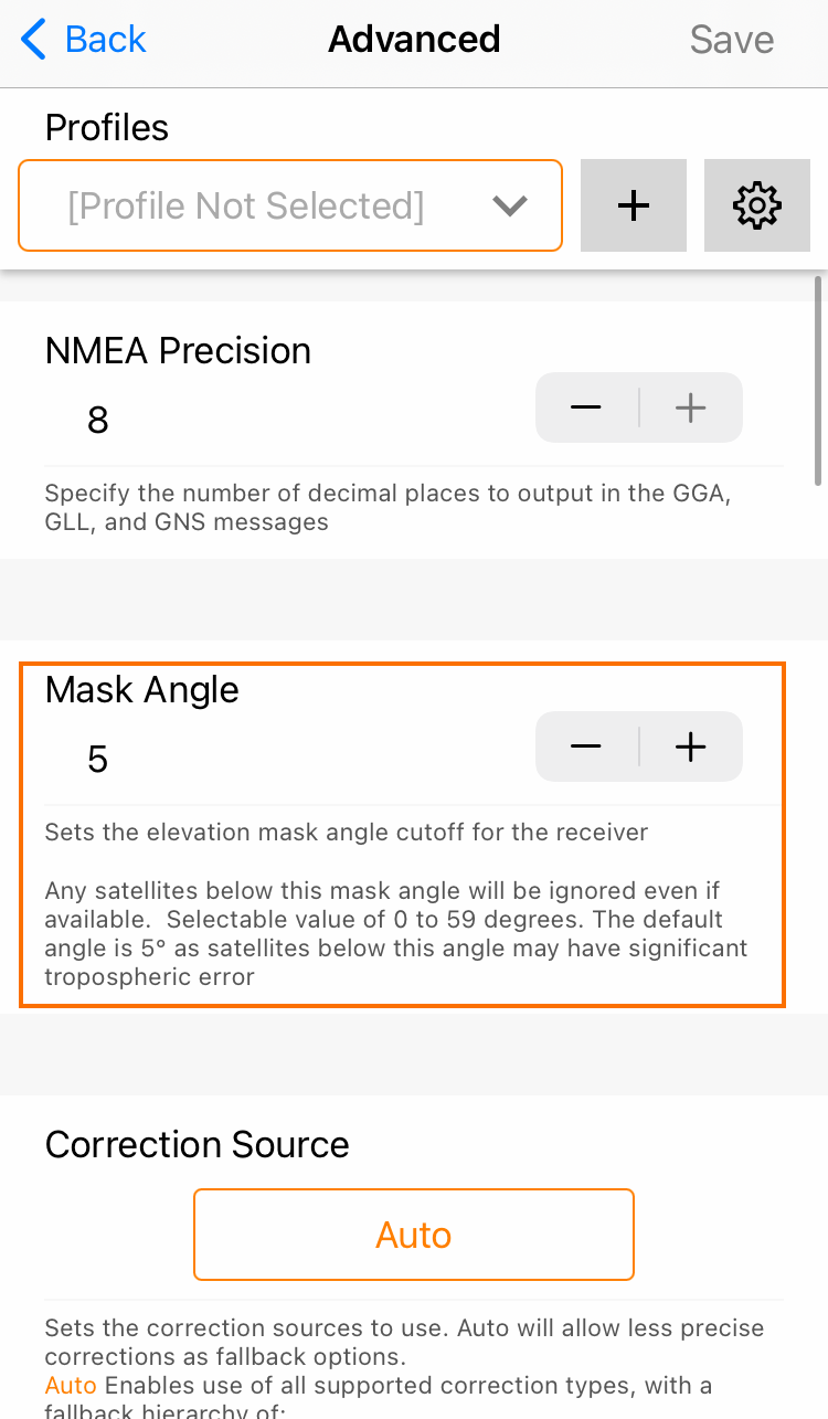 | Mixed | The default option. The receiver uses all GNSS satellite signals available to calculate the position solution. This includes non-GPS satellites, which do not have DGPS or SBAS corrections. Certain NTRIP/RTK services do provide corrections for non-GPS satellites. | The best choice for most situations. Particularly good if there is a lot of interference. | |