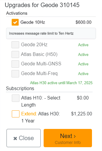 - Subscriptions include time-based purchases of an H10 or H30 Atlas L-band correction service.