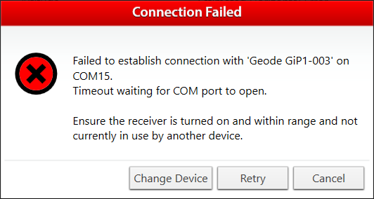 This may fix the connection. If not, Geode Connect will display the following: