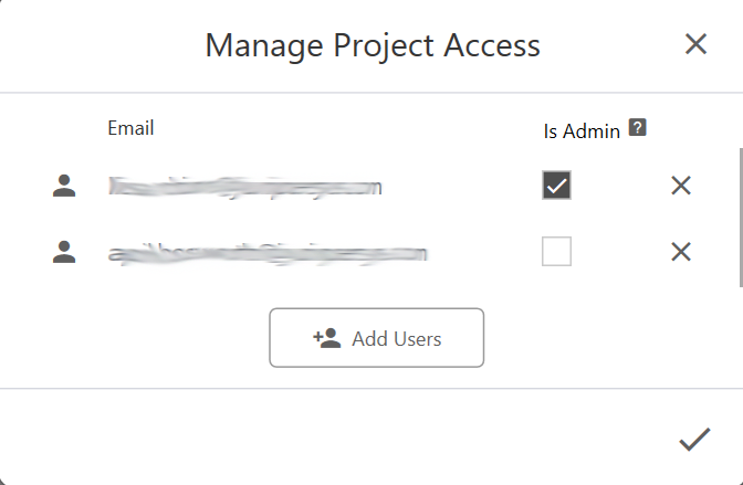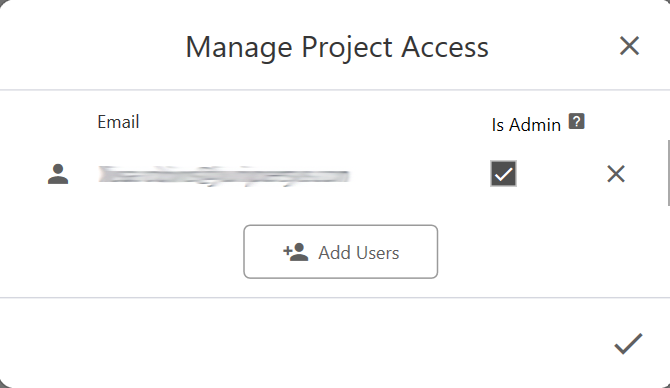 For an administrative user, select the Is admin? checkbox. A user with administrative privileges can make changes to the project's template, set up user access, or permanently delete the project from the cloud.