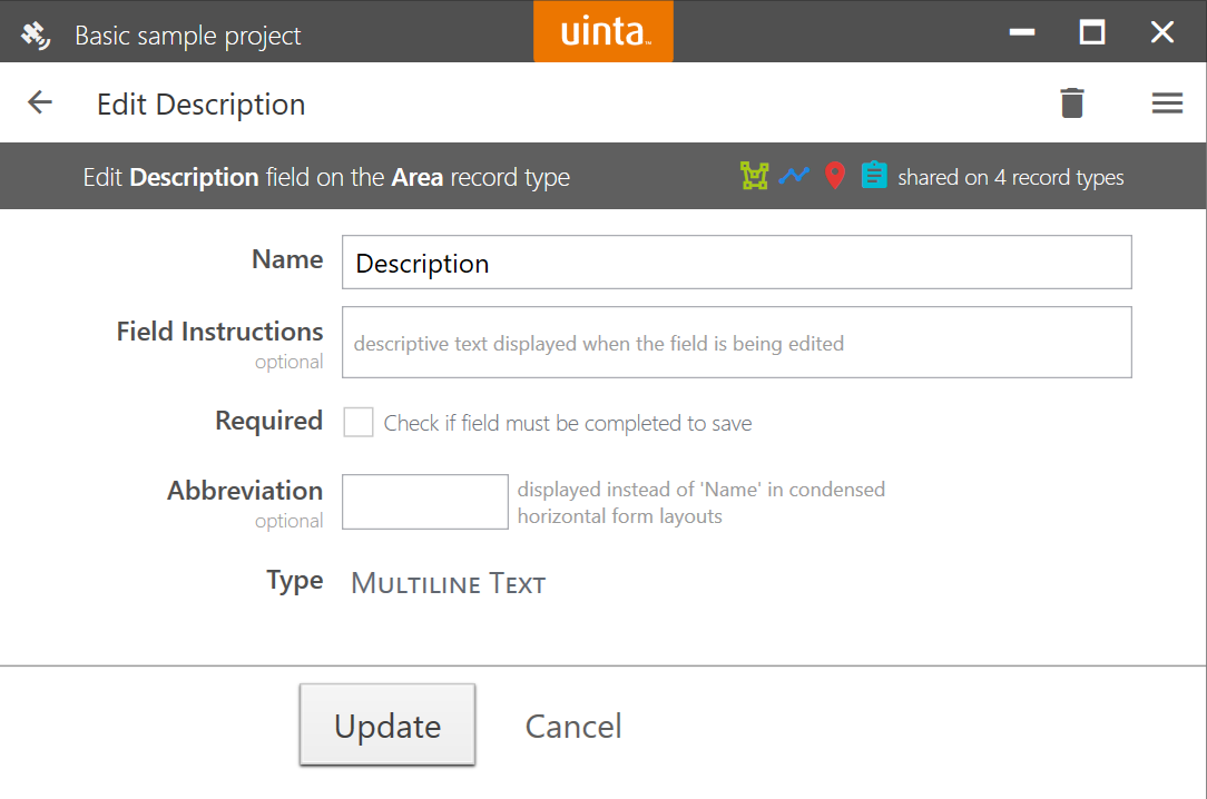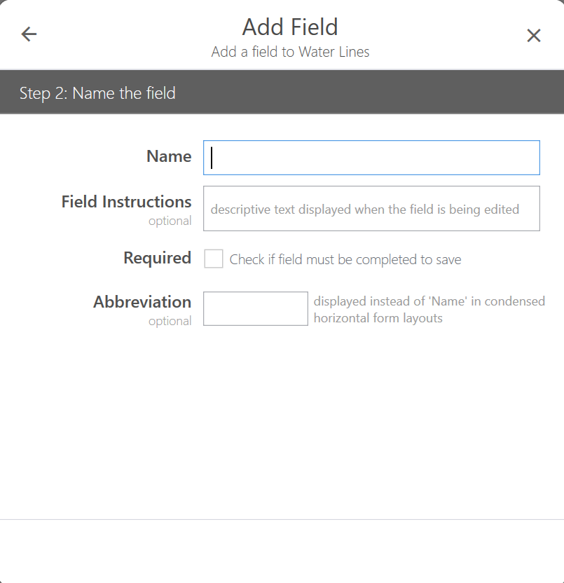 . - Enter the name of the field, field instructions (optional), and abbreviation (optional).