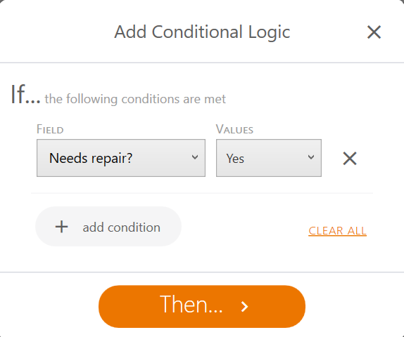 In the following example, Uinta hides the field Repair notes when the field Needs repair? is set to No.