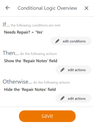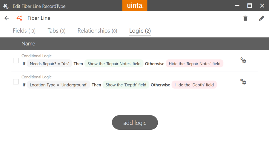 Note: Creating conditional logic is an advanced form design feature available in Uinta for Windows. However, any conditional logic added to templates and projects in Uinta for Windows will work in Uinta for Android and Apple iOS.