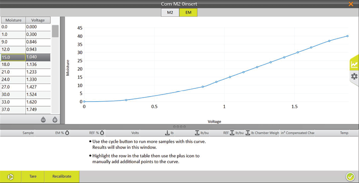 Calibrate High Moisture Corn on an EM Moisture Curve