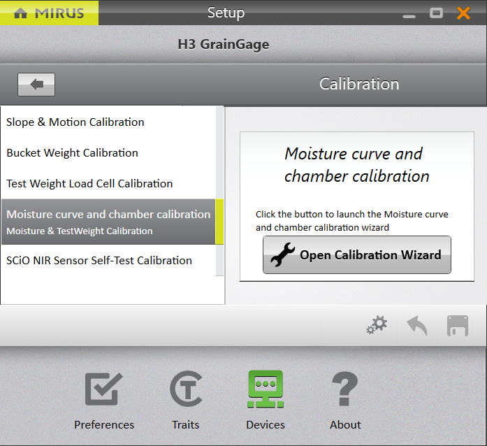 - Go to Home > Setup > H3 GrainGage > Calibration.