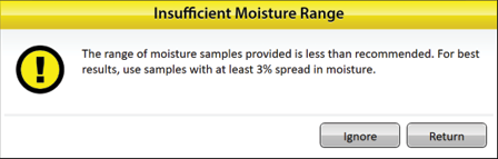 - Use samples that vary in moisture by at least 3% (from lowest to highest moisture content).
