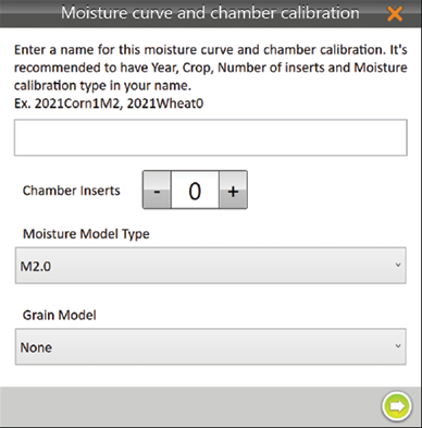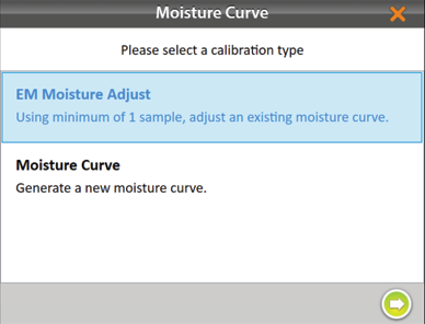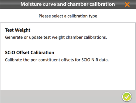This will take you to the moisture calibration screen. For the next steps, see Create a SCiO Calibration File, Create an M2.0 Calibration File, or Create an EM Calibration File.