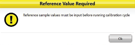 If you do not enter a moisture value you will see the Reference Value Required warning.