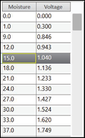 Mirus displays the adjusted moisture curve with its moisture percentages and voltages.