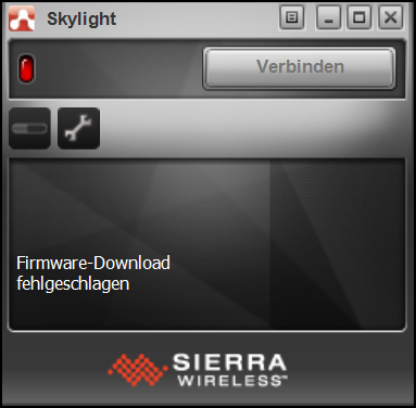 In some cases, you will get an error message indicating that Skylight cannot upload the firmware. If this happens, please follow the instructions Cellular Modem Troubleshooting on Mesa 3 Windows under the heading "Possible Firmware Update." The following picture shows the firmware error (in German).