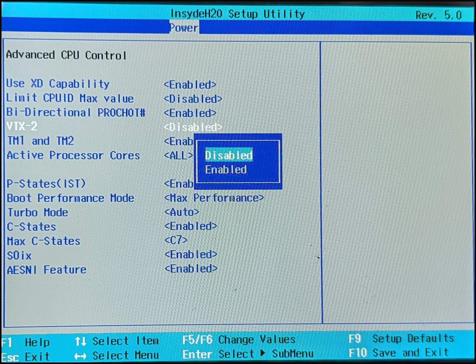 - Navigate down to VTX-2 and press enter to change it to Disabled.